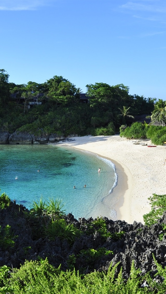Белый пляж (White Beach) недаром входит в 100 красивейших пляжей мира. Белоснежный песок, кокосовые пальмы, кристально чистый лазурного цвета океан. Здесь нет океанских волн. Температура воды около 28-30 градусов.