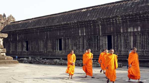 В Ангкор Вате всегда много буддистских монахов. А туристы и рады их фотографировать на фоне стен древнего храма.