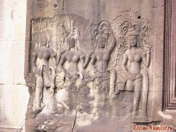 Небесные танцовщицы апсары на стенах Ангкор-Вата. Симпатичные, правда?