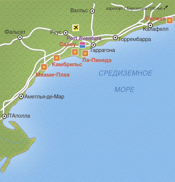 Достопримечательности Камбрильса Коста-Дорада Карта: