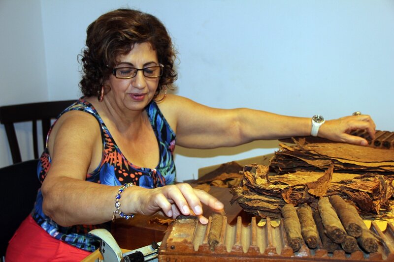 Тетенька, которая выполняет роль кассира и, по мере сил, экскурсовода, так же скручивает из готового табака сигары на специальной машинке, при желании это даже можно сделать самому.