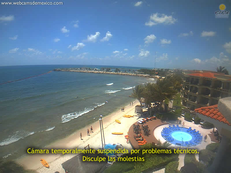 Веб-камера находится в отеле El Taj на 14-й улице и на пляже в центре Плайя-дель-Кармен.