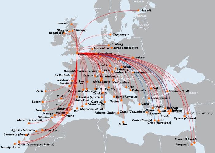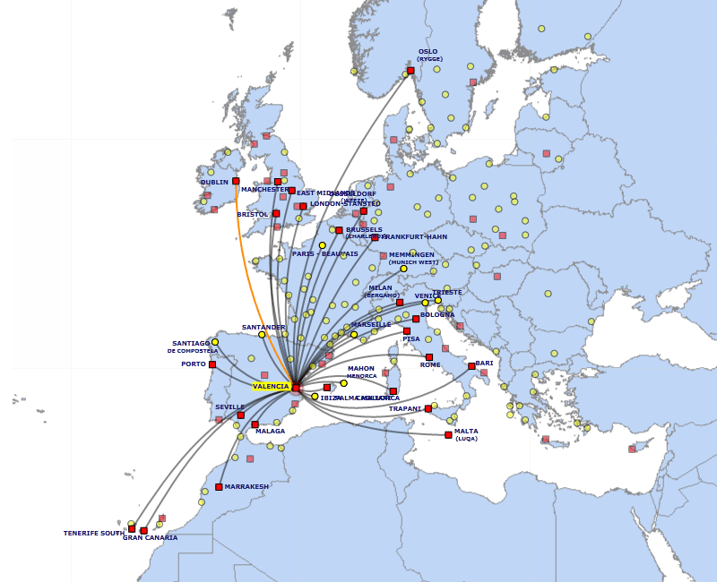Крупный европейский лоукостер совершает регулярные авиарейсы по разным странам Европы, Африки и Средней Азии, обслуживая более 200 направлений.