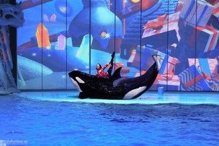Многое в шоу делается впервые в мировой истории водных представлений. Например, раньше никому не удавалось соединить в одном представлении в закрытом помещении столько морских животных: три касатки, восемь дельфинов, две белухи, два моржа. А примерно через месяц к ним присоединятся еще два морских льва. Никто не использовал в водном шоу столько светового, звукового и проекционного оборудования. В мире еще не было опыта столь органичного совмещения образовательного и развлекательного контента на одной водной площадке. Посетители ведь не только смотрят за выступлениями удивительных морских обитателей, но и слушают интересные рассказы о них и их сородичах. К примеру, можно узнать, что только четыре вида акул из 450 видов, известных науке, по-настоящему опасны для человека. А однажды морская черепаха спасла жизнь человеку в Карибском море. Он держался за ее панцирь 15 часов. И все это время черепаха находилась на поверхности воды, видимо, понимая, что от ее действий зависит жизнь тонущего человека.