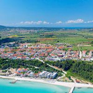 Основан он был не настолько давно, как большинство греческих городов – в начале ХХ века (основали его русские монахи из монастыря Святого Пантелеймона), а потому он не имеет ни богатой истории, ни солидных исторических памятников. Тем не менее, несколько достопримечательностей здесь всё же имеется – это раскопки древнего храма Зевса-Амона (который был обнаружен при строительстве очередного отеля в 1969 году и, как предполагают учёные, был построен ещё в V веке до нашей эры), храма Дионисия, а также так называемая пещера Нимф. А в память о том времени, когда в Грецию пришло христианство, осталась небольшая церквушка, возведённая неподалёку от разрушенных храмов в 1865 году.