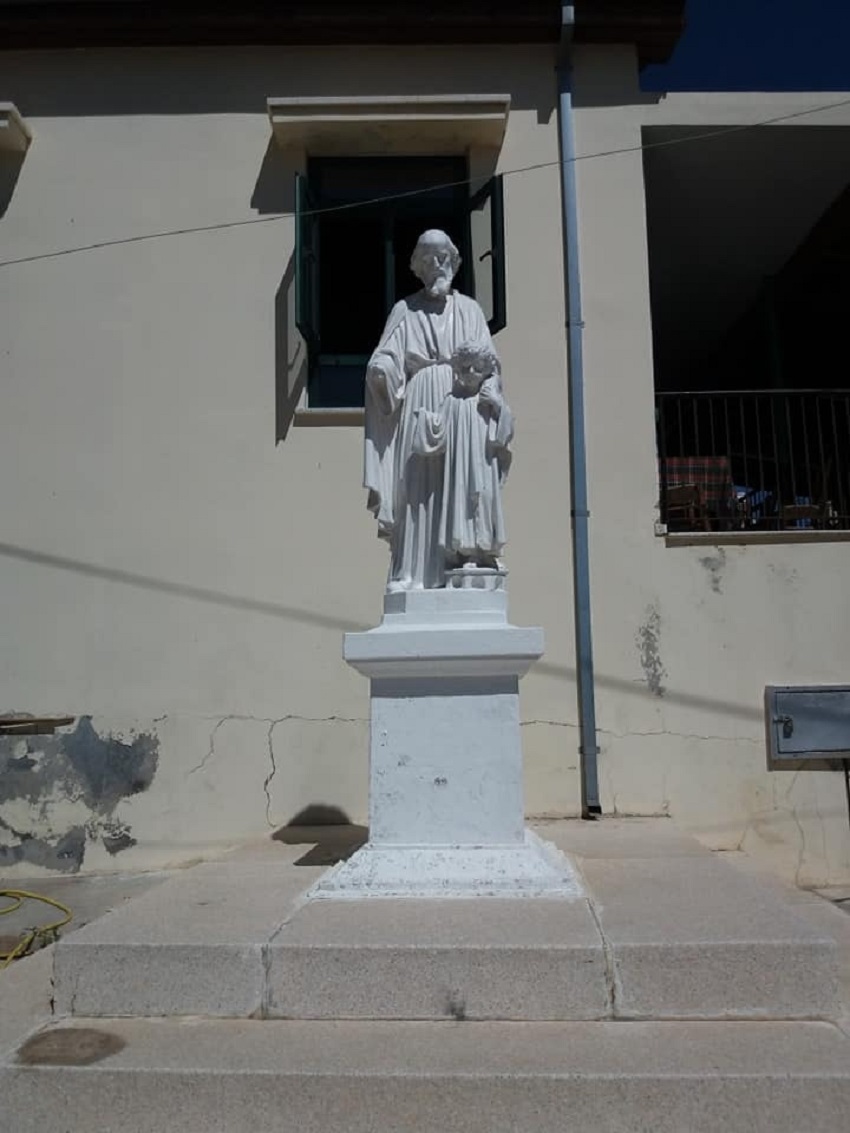 Нерукотворная статуя Девы Марии с младенцем в гроте на мысе Греко. Пещера считается святым местом и наверху построили небольшую церковь.