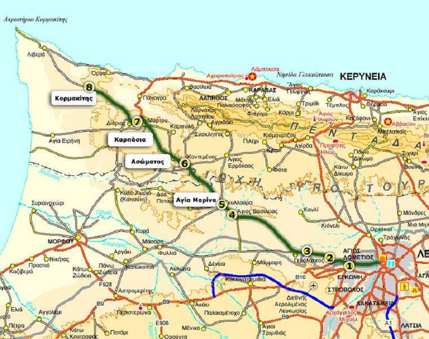 Мы едем из Керинии в западном направлении. Вдоль дороги — типичная средиземноморская застройка: от совсем скромных старых домиков довоенной постройки до новых вилл и отелей в стиле “псевдо-ампир”, “псевдо-барокко”, “псевдо-колониализм”.