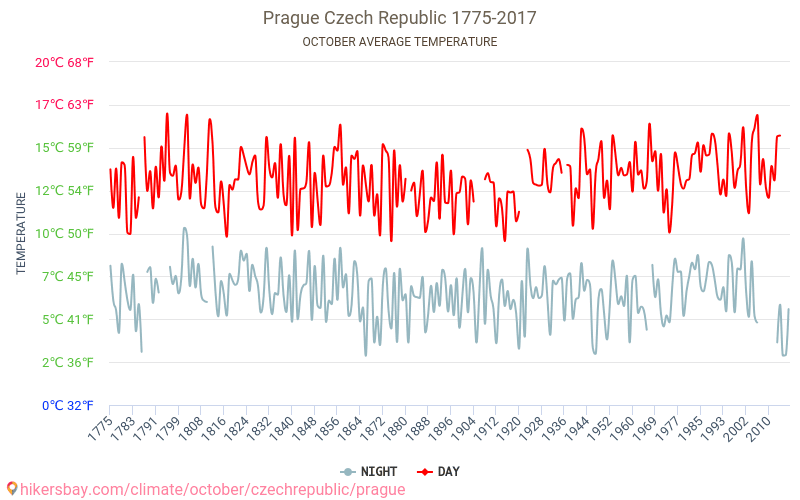 - Обзор : Октябрь — первый настоящий осенний месяц в Чешской Республике.Температура намного ниже, чем в сентябре, с некоторыми дождливыми днями. К концу месяца средняя температура составляет около 8ºC (46ºF), а средняя максимальная температура достигает лишь 11ºC (52ºF).