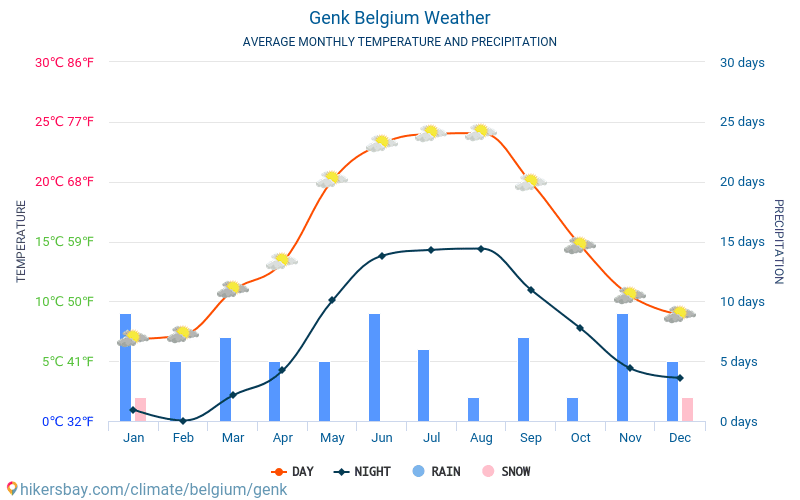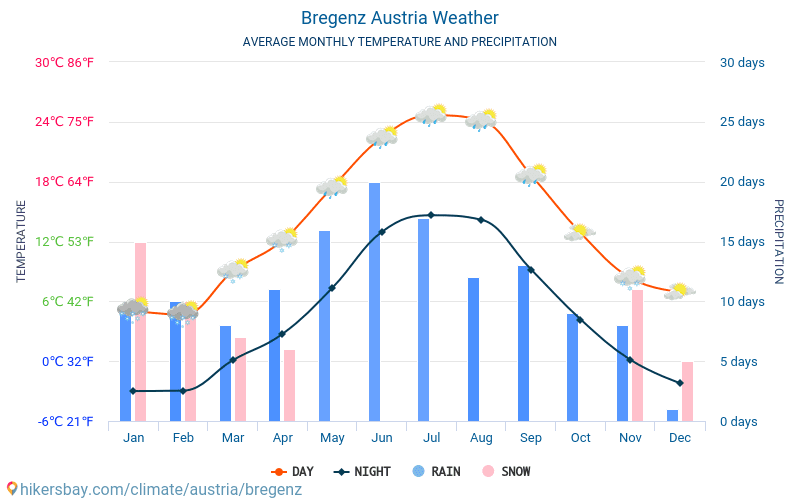 - Обзор : Первый настоящий летний месяц не только один из самых теплых, но и самых влажных. Часто случаются послеобеденный дождь и грозы. Средняя температура составляет около 15ºC (59ºF), а средняя максимальная — 19ºC (66ºF). Ночные средние минимумы опускаются до однозначных цифр.