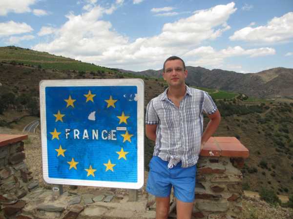 Как-то летом мы отдыхали в Испании и успешно совмещали пляжный отдых с экскурсионным. Познавательная программа включала в себя в том числе посещение побережья Франции. Ткнув пальцем в карту на ближайший к границе Испании и Франции прибрежный городок и прочитав пару отзывов в интернете, было решено отправиться в Коллиур. От Калельи (испанский городок, где находился наш отель) до Коллиура дорога на машине заняла около 3 часов. Довольно утомительно, но оно того стоило! Граница Испании и Франции отмечена лишь парочкой покосившихся табличек, у которых фотографируются туристы (и мы не стали исключением).