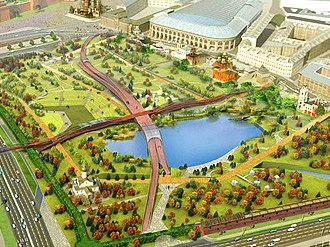 Грандиозный проект – совместное детище ландшафтных архитекторов и инженеров из нескольких стран. Совместный проект нью-йоркского архитектурного бюро «Diller Scofidio + Renfro» и московского «Ситимейкеров» победил в конкурсе на оформление парковой зоны у Кремля.