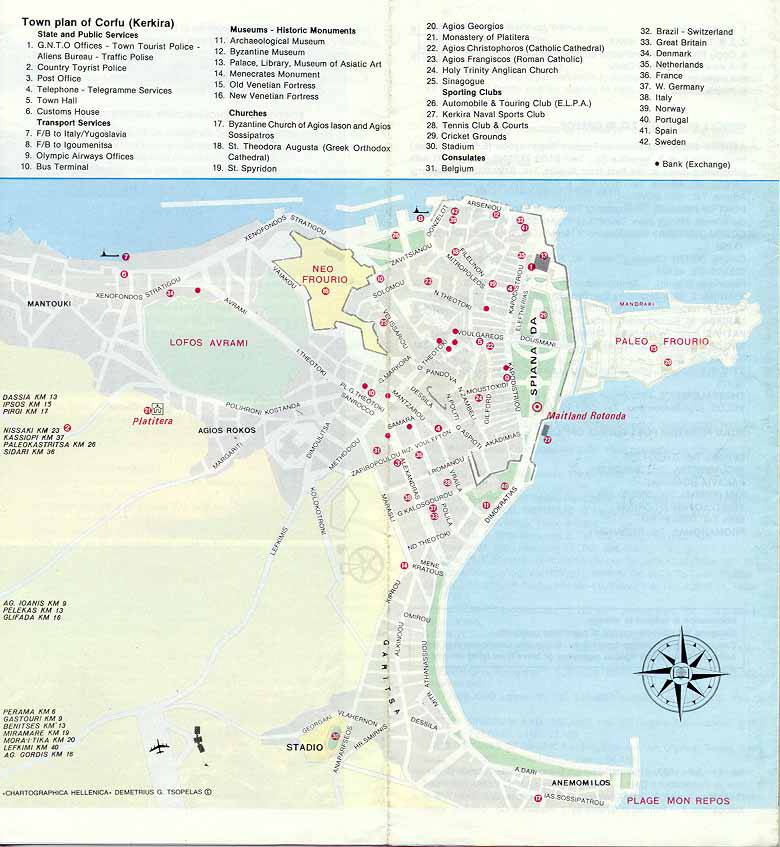 Интерактивная карта Корфу где находятся достопримечательности, что посмотреть.