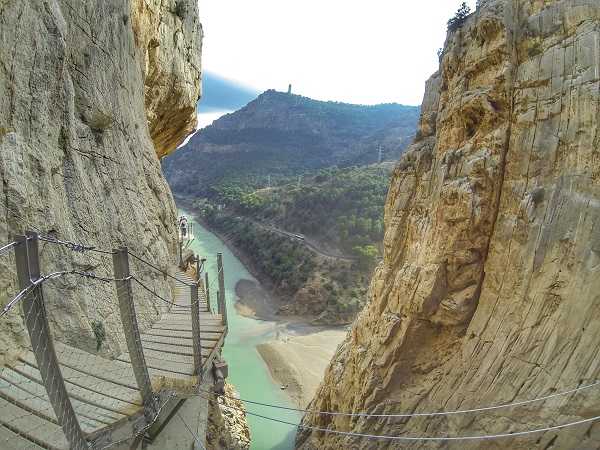 Королевская тропа Испании известная как El Caminito del Rey является одним из самых мистических мест Андалусии и топовой экстремальной достопримечательностью мира. Сюда, в город Малагу, ежегодно приезжают сотни тысяч туристов, чтобы пощекотать себе нервы, испытать силу воли, избавиться от страхов. И тут есть чего бояться, потому что тропа представляет из себя узкую дорожку, выложенную из деревянных дощечек, которые крепятся на сваях и рельсах, прибитых к скалистому основанию и нависает эта конструкция над грозным и глубоким горным ущельем Эль Чорро (La Garganta del Chorro).