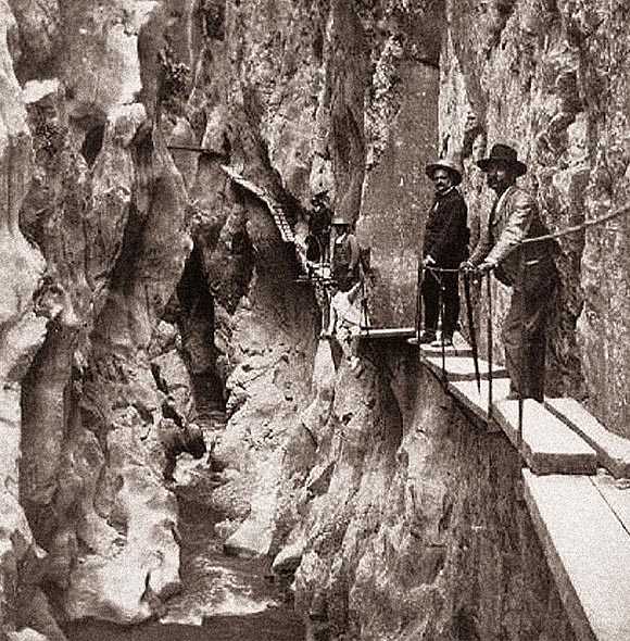 Ущелье Десфиладеро-де-лос-Гаитанес до начала строительства Королевской тропы на почтовой открытке конца XIX века. Источник: caminitodelrey.info