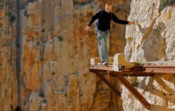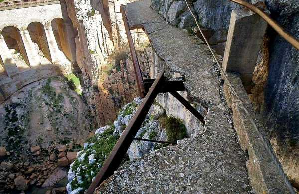 Ветхие бетонные плиты Королевской тропы. Фото: © David Domingo / flickr.comОднако, именно в таком своем состоянии тропа получила широкую известность среди любителей острых ощущений, «возродившись» из небытия. Профессиональные искатели адреналинового блаженства со всего мира принялись с энтузиазмом покорять рискованный маршрут. Следом за ними неизбежно потянулись прочие безбашенные дилетанты, предвкушая возможность сделать крутые сэлфи над пропастью. Королевская тропа вновь «заработала»! В неофициальном рейтинге самых опасных мест Испании она прочно заняла верхнюю ступень пьедестала, а некоторые присваивали ей и первое место в мире!