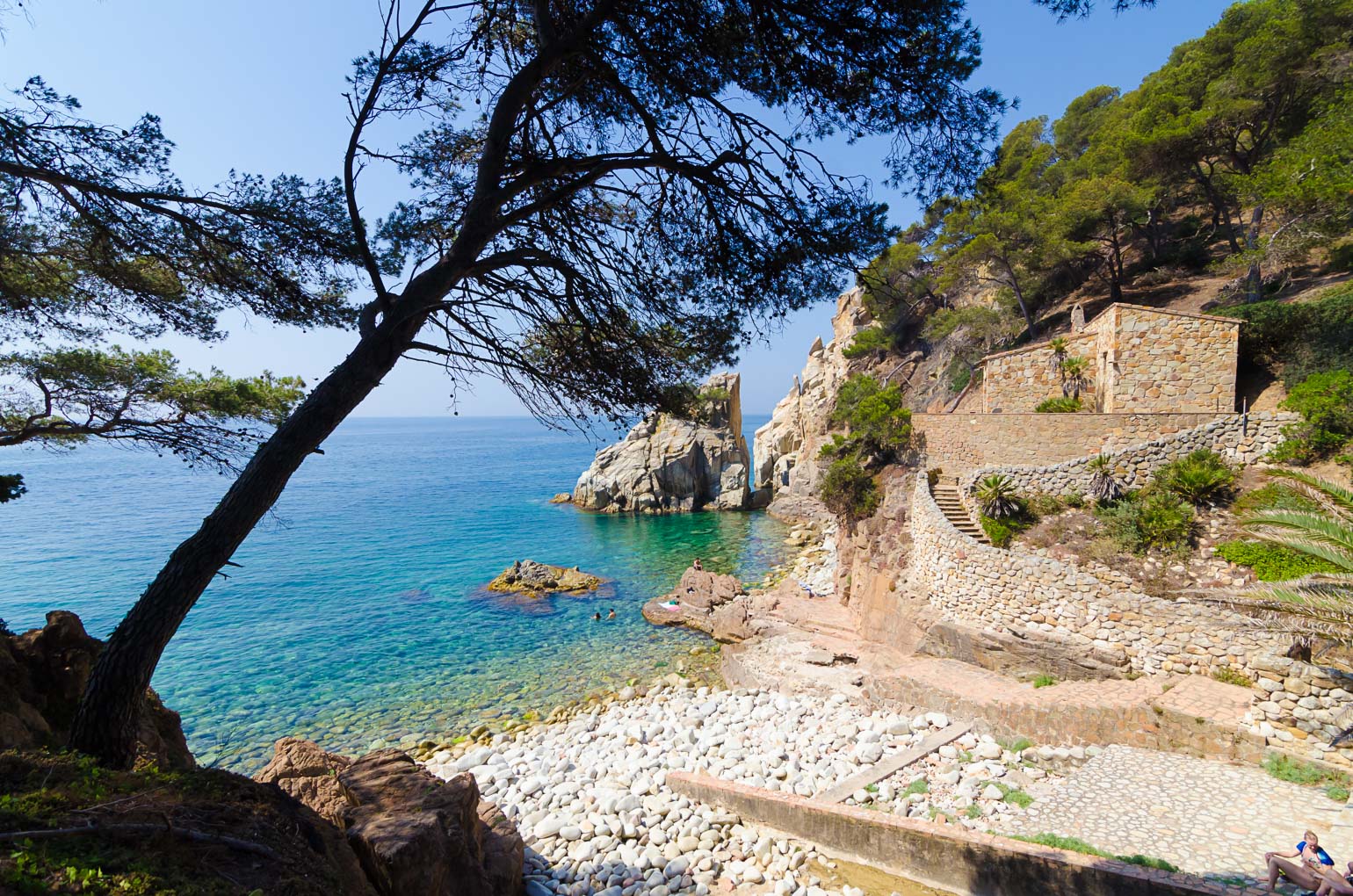 На берегу бок о бок располагаются два курортных городка: Calella de Palafrugell и Llafranc. Граница между ними номинальна — каменный мыс, разрезающий побережье на две бухты. Изначально мы ехали в первый из городков и о существовании второго не подозревали.