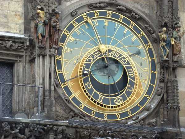 Часы были изготовлены в начале XV века часовыми мастерами Микулашем Каданом и Яном Шинделем. Ян Шиндель был профессором математики и астрономии в Карловом университете. Часы показывают годы, месяцы, дни и часы, время восхода и захода Солнца, время восхода и захода Луны, а также положение знаков зодиака.