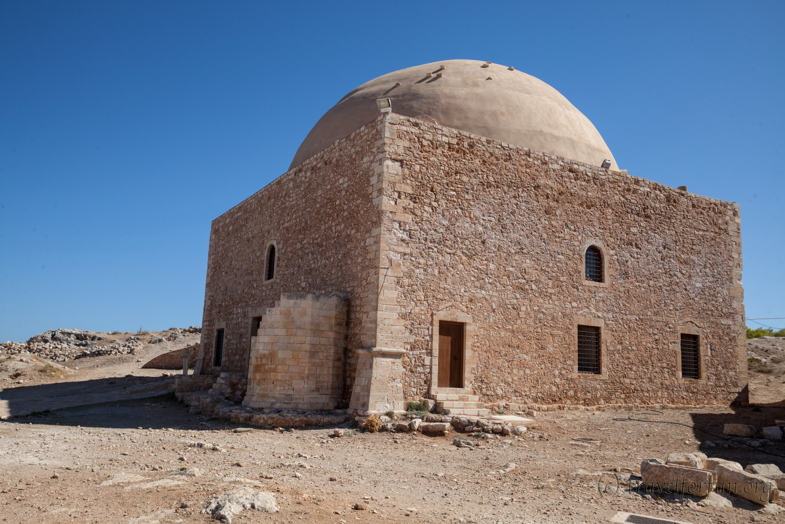 Крепость Fortezza представляет собой огромное оборонительное сооружение, настолько большое, что могло бы обеспечить укрытие всему городу. Она считается самой большой венецианской крепостью из когда-либо построенных. Однако, по-видимому, он не играл никакой важной роли по сравнению с другими крупными укреплениями, такими как Кандия Ираклиона. Действительно, легкая сдача туркам в 1645 году объясняется отсутствием траншей и эпидемией холеры, охватившей замок.
