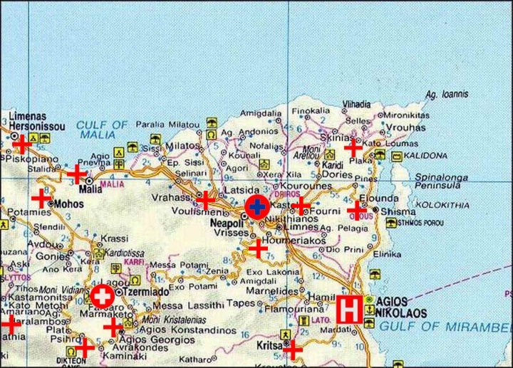 Он расположен на крайнем северо-востоке Крита, здесь есть аэропорт и порт.