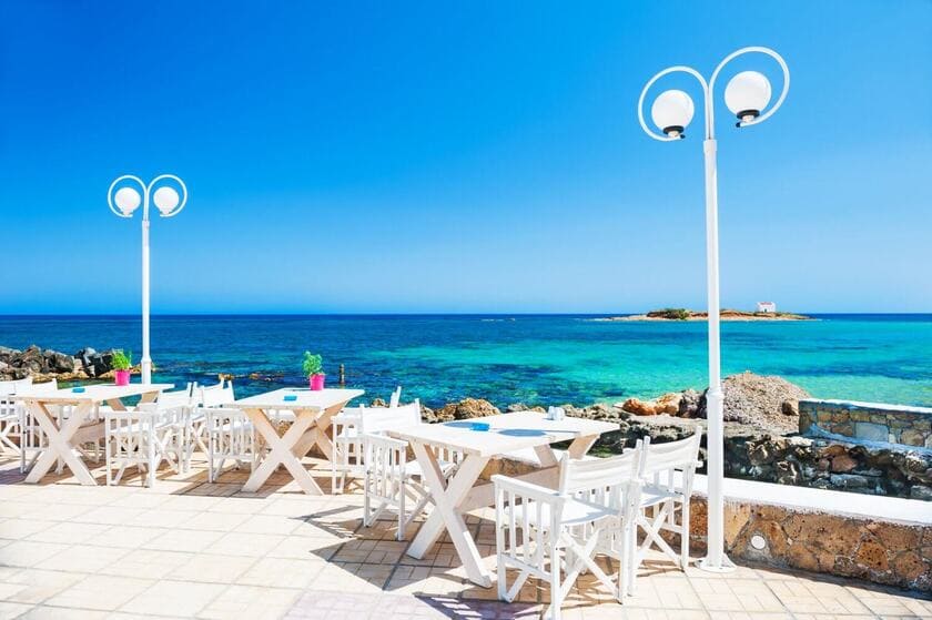 Море мелкое и теплое, поэтому идеально подходит для купания с друзьями и наслаждения жарким критским солнцем. Когда жара становится невыносимой, поблизости есть таверны, где можно насладиться освежающим коктейлем и дождаться ветерка.