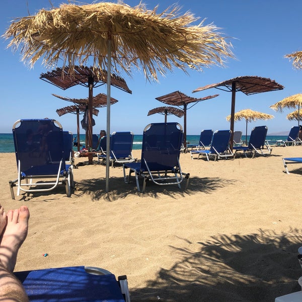 Прекрасный пляж, хорошие, бесплатные шезлонги при покупке напитков/еды в таверне. Есть туалеты и душ.