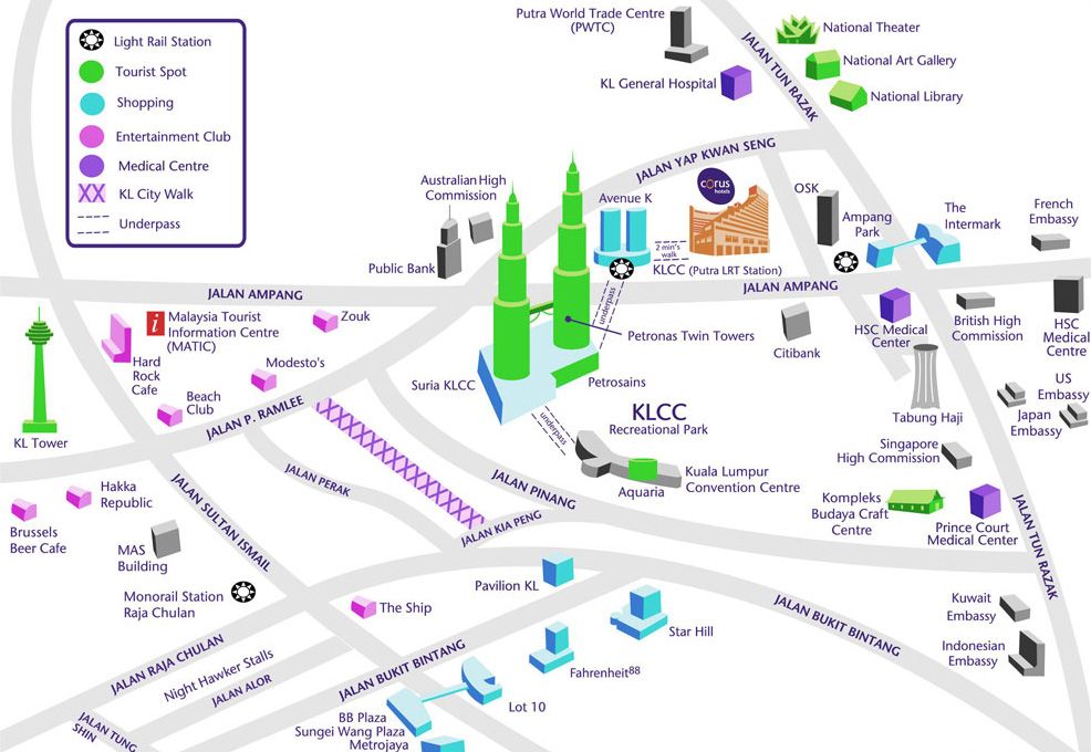 Главный ориентир – башни «Петронас». Если добираться не пешком, удобно поехать в KLCC на метро. Выходить нужно на одноименной станции. Она связана с комплексом удобным кондиционированным переходом.