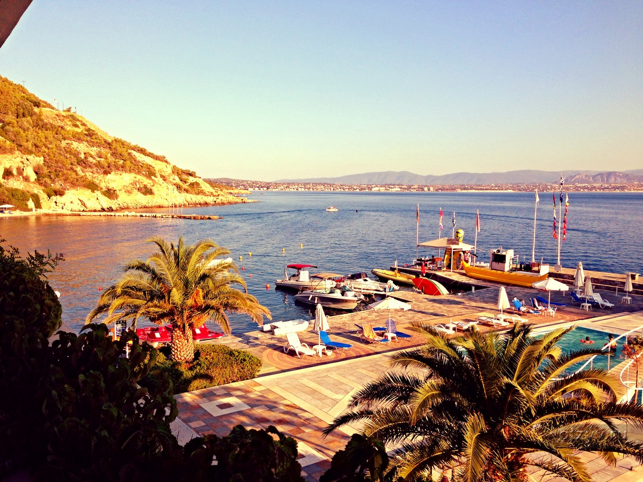 вид из моей комнатыВ Лутраки довольно большое количество отелей. В основном это небольшие городские отели 2 *, 3 * и 4 * с общественным пляжем. Мне всегда больше всего нравились эти отели, особенно если отель на набережной и с балконом с видом на залив.