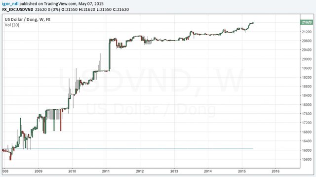 На 2016 год группа прогнозирует, что донг будет торговаться на уровне 22 108 за доллар США.