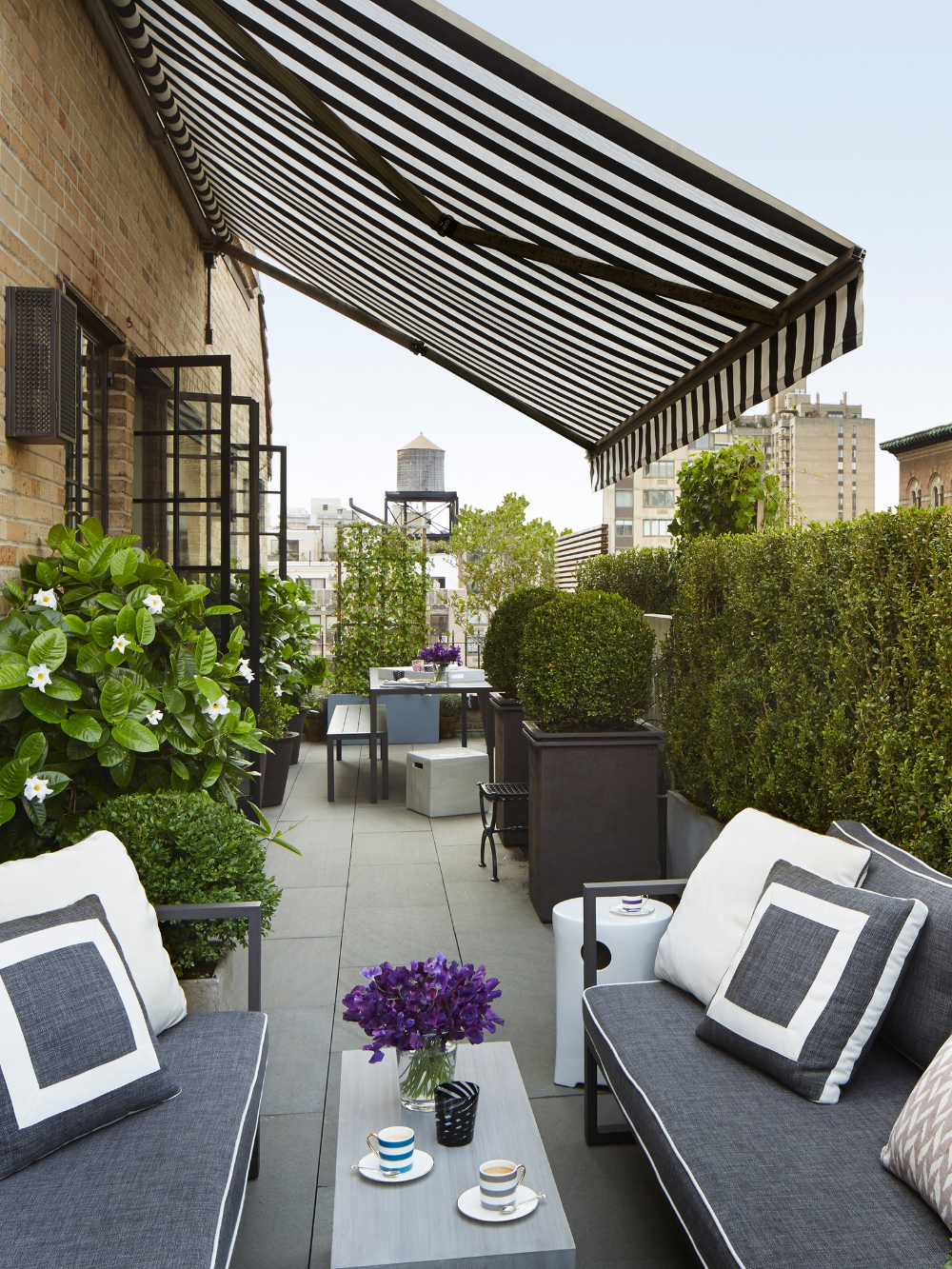 Перед тем, как заполнить террасу вашей квартиры растениями, найдите время, чтобы узнать, как она подвергается воздействию солнечного света, дождя и ветра. Многие внутренние дворики находятся в частичной или полной тени. Если часть вашей террасы получает гораздо больше солнечного света, чем остальная часть, дизайн вашего сада должен отражать это. Разместите садовые контейнеры у стен внутреннего дворика, чтобы защитить более чувствительные растения от сильного ветра.