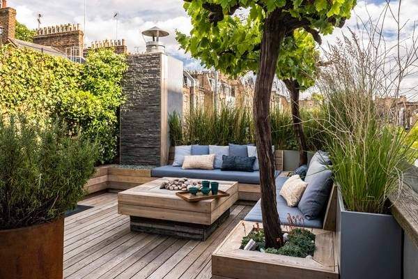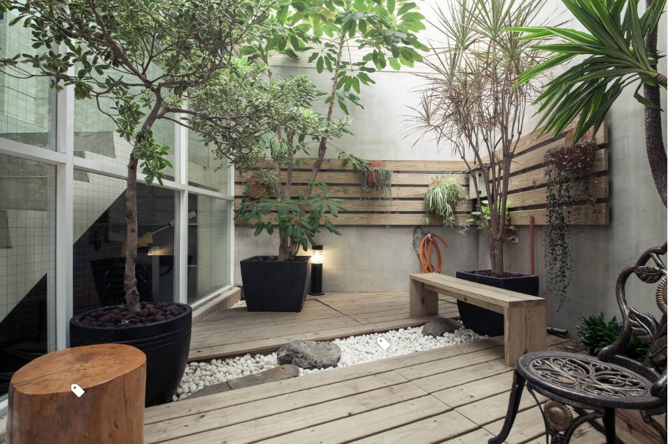Сохраняйте цветовую палитру вашего внутреннего дворика чистой и простой. Натуральные элементы, такие как дерево или камень, добавят текстуру небольшому пространству, не создавая визуального беспорядка.
