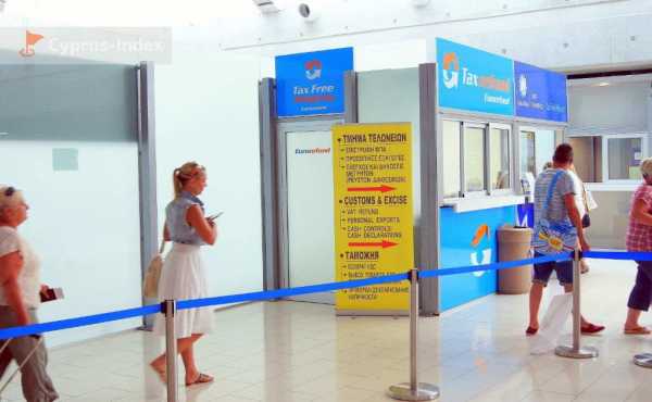 После получения посадочного талона пассажиры проходят паспортный контроль и пограничный досмотр, после чего переходят в зал ожидания вылета – с этого момента человек юридически считается покинувшим территорию Кипра. Справа, сразу за зоной досмотра, расположено отделение таможни, в котором производиться возврат НДС (Customs / VAT Refund). Компенсировать часть НДС на покупки можно по специальному чеку (ваучеру) “Tax Free Form” или “Refund Cheque”- он по требованию оформляется продавцом в магазине, и содержит информацию о покупателе, сумму и дату покупки, размер возврата НДС. А чтобы возвратить часть НДС сотруднику таможни нужно предъявить покупку, паспорт, чек магазина и чек “tax free”. При этом возвращается около 10 % от стоимости покупки.