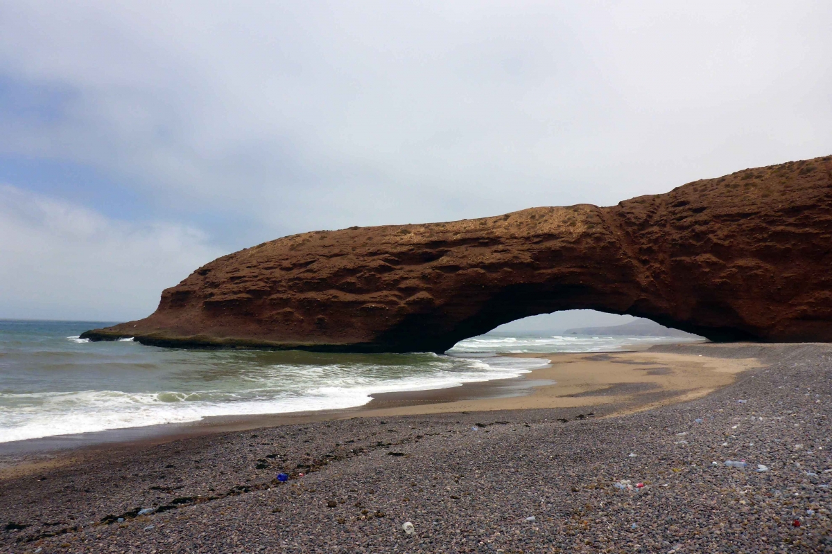 Арка в скале — огромнаМусор вперемешку с камнямиЛегзира создана природой для романтических прогулок по берегу океана, встречи закатов и рассветов, для тысяч волшебных фотографий. На этом пляже разрешено купаться, но сильные волны и подводные скалы небезопасны. Вода из-за холодных течений не прогревается. Зато можно кататься на квадроциклах, заниматься серфингом, летать на параплане. Прокат квадроциклов и серф-станция есть на побережье, а парапланы стартуют из Сиди Ифни.