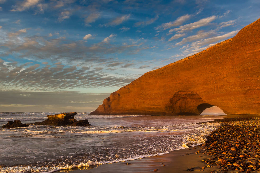 Западное побережье Атлантики тянется от Норвегии до ЮАР, и одно из самых его интересных мест — пляж Легзира. Несмотря на то, что наверняка большинство моих читателей хоть раз в жизни видели его на фотографиях — этот пляж постоянно входит в различные подборки красивейших мест нашей планеты, — очень немногие знают, что находится он именно в Марокко. Да о чём тут говорить, если даже большинство коренных марокканцев не подозревают о его существовании. А между тем только ради этого пляжа уже можно начать собирать чемоданы в эту прекрасную страну…