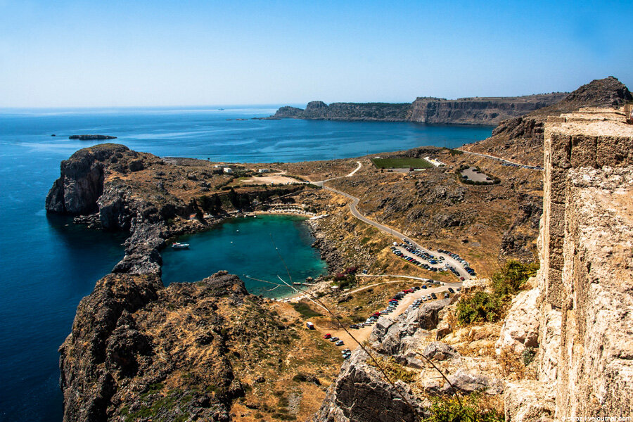 8 км от Акрополя Линдоса с руинами храма Афины.