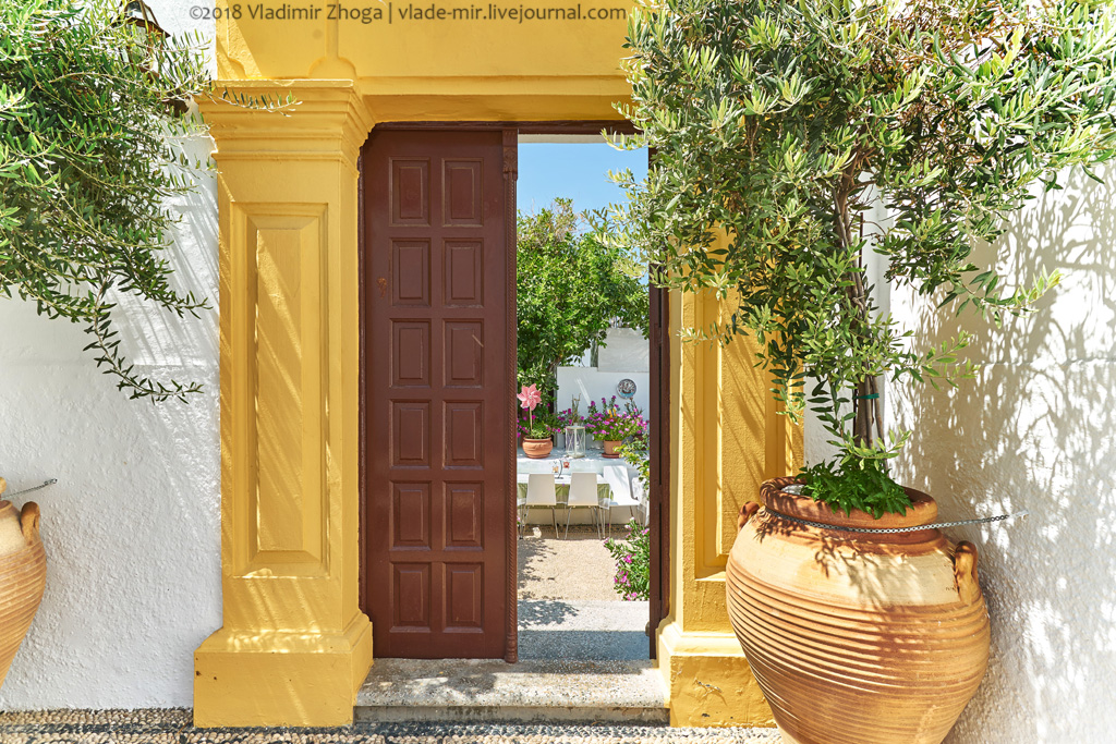 Знакомство с этим старинным городом Греции лучше начинать с прогулки по узким виляющим улочкам, многие из которых – глухие. В туристическом центре можно взять бесплатную карту города, и хотя подписаны на ней не все улицы, вероятность заблудиться с ней уменьшается. Все дома Линдоса маленькие, не выше 2-х этажей, и традиционно выкрашены в белый цвет. На первых этажах многих из них работают магазинчики и уютных кафе. В каждый дворик здесь ведёт своя уникальная по оформлению дверь – многие туристы даже делают их фото в память про город Линдос.