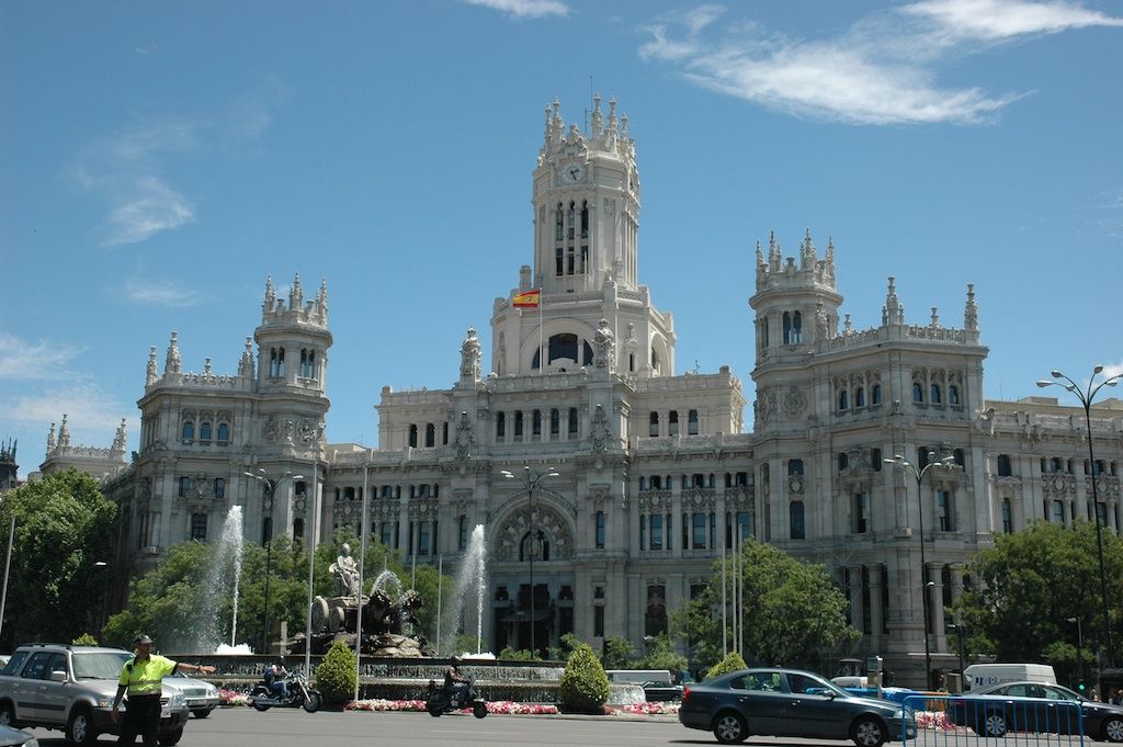 Фонтан Сибелес расположился на главной транспортной развязке Мадрида. Это один из главных символов города.