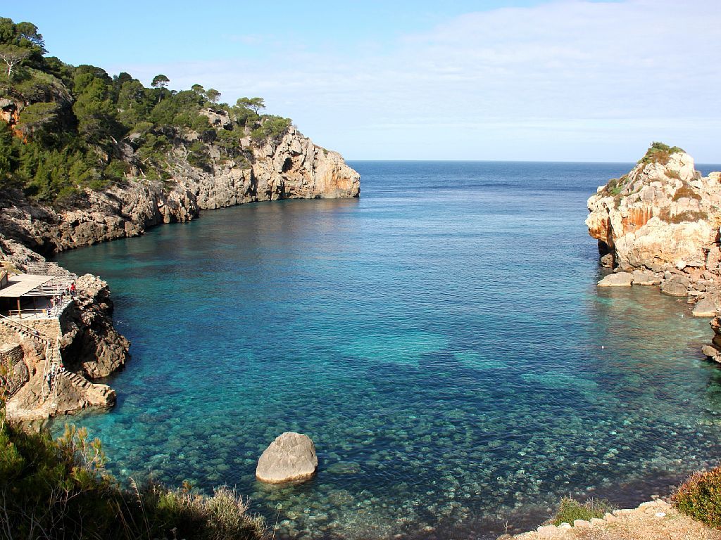 Этот скалистый пляж в бухте, окруженный горами Трамунтана, представляет собой кусочек рая. Приходите подготовлены хотя! Летом есть только один вход. Это крутая и извилистая дорога, которая недостаточно широка для двух машин.