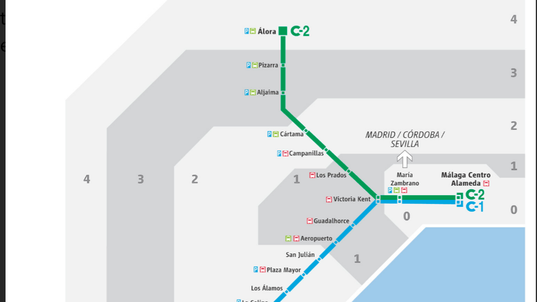 - Самые важные остановки маршрута: железнодорожный вокзал Малаги, автовокзал Малаги Maria Zambrano, центр Малаги.