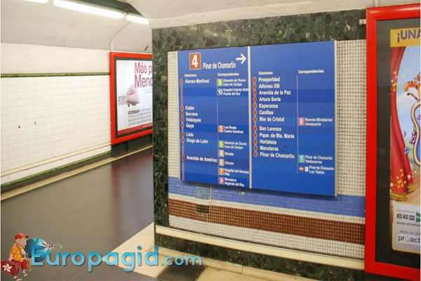 У входа на каждую станцию на стене обязательно висит схема метро, которая поможет вам спланировать свою поездку. Бесплатные схемы метро, по-испански»mapas», есть в билетных кассах, достаточно попросить. Пройдя через турникет, вы увидите указатели направления движения поездов.