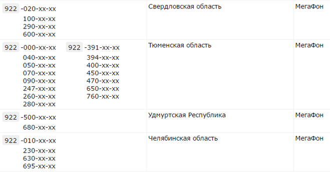 Телефонные префиксы в зависимости от мобильного оператора