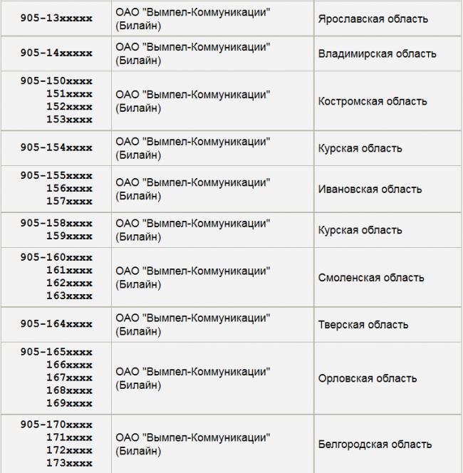 - 2 Телефонные префиксы в зависимости от мобильного оператора