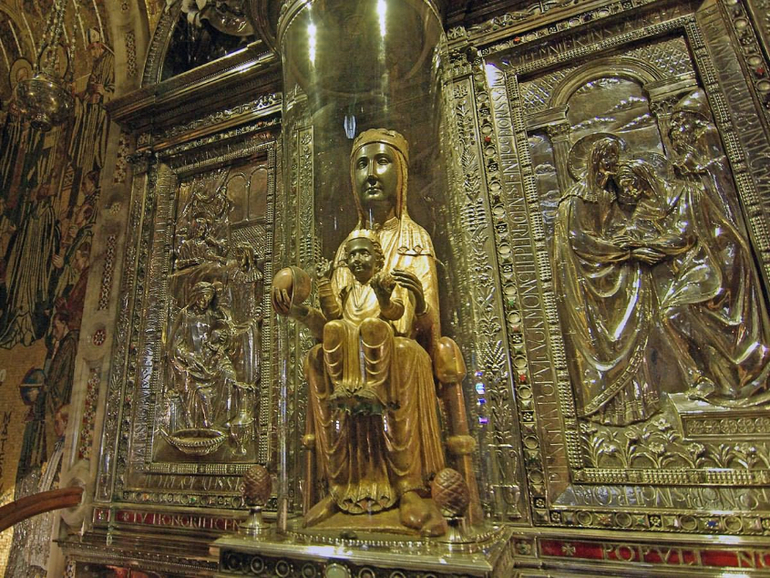 Здесь, справа от алтаря, вы найдете репродукцию Образа. Это репродукция оригинальной Черной Мадонны, которая была построена внутри базилики Монтсеррат.