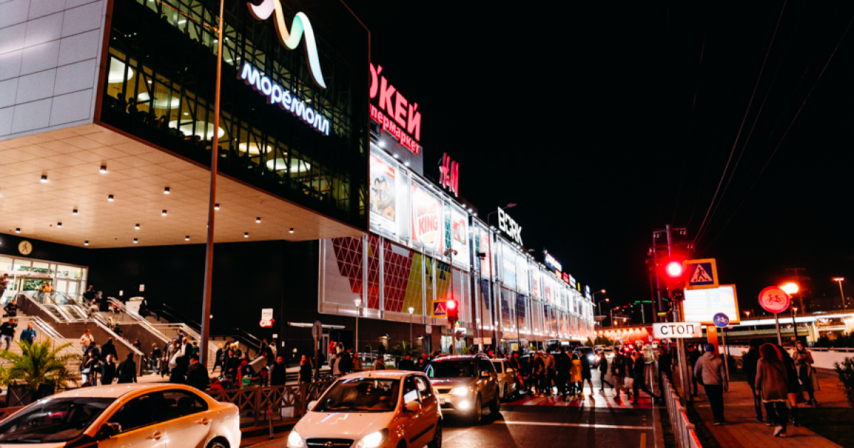 м, расположенный в центральном районе Сочи. Ежедневно его посещают свыше 30 000 гостей и жителей курорта. На территории «МореМолла» работает более 350 магазинов, около 40 кафе и ресторанов, детский развлекательный центр, кинотеатр на восемь залов, контактный зоопарк, двухуровневая парковка и многое другое.