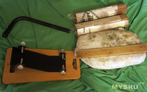Хамонера — это деревянная подставка с вертикальной штангой, на которой находится специальный зажим. Продаётся она в разобранном виде. Собирается довольно просто. Хамон вставляется в это устройство копытом вверх и удерживается в неподвижном состоянии — это важное условие при разделке жирной и скользкой свиной ноги, которая так и норовит выскочить из рук и резво скакать по Вашей кухне.