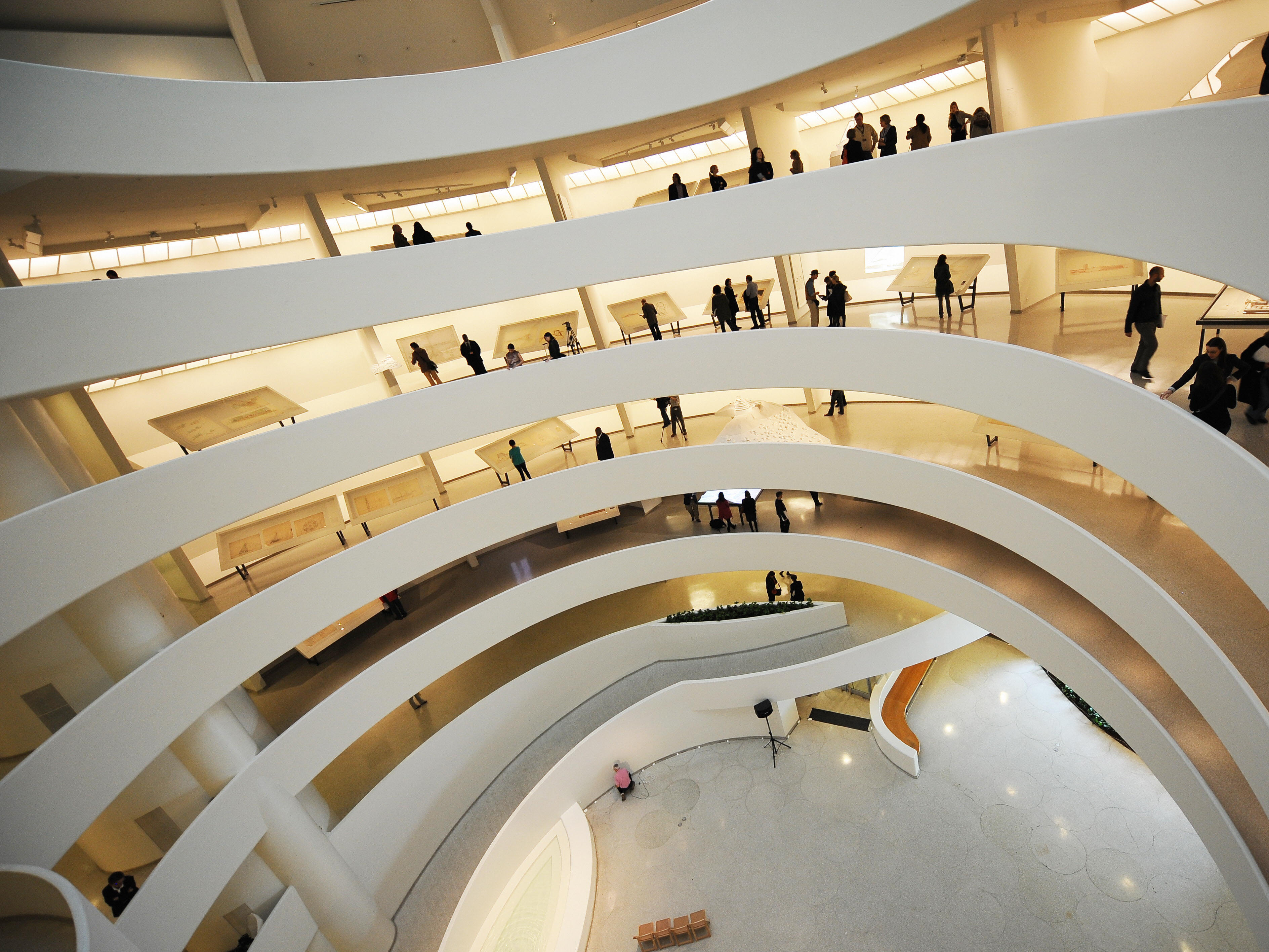 Гуггенхайма в Нью-Йорке, который он спроектировал как спиральную рампу для просмотра авангардных произведений искусства.