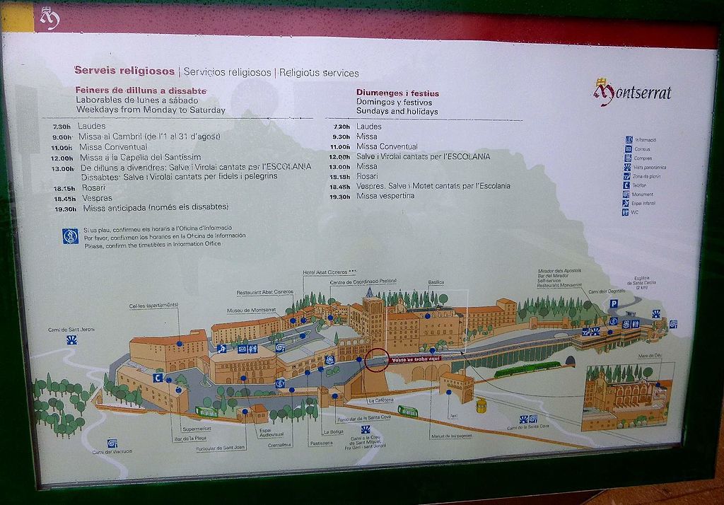 Когда вы доберетесь до бенедиктинского аббатства Санта-Мария-де-Монтсеррат, найдите время, чтобы посетить монастырь, красивую базилику и, возможно, музеи. Основные пешеходные тропы до вершины горы начинаются от монастыря, но есть и альтернативные, менее популярные тропы из других мест вокруг вершины горы, вдоль дороги BP-1103. Вы можете получить карту основных маршрутов в туристическом офисе монастыря Монсеррат, но приложение maps.me очень полезно для планирования маршрута с использованием альтернативных путей.