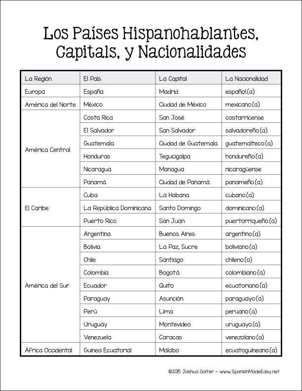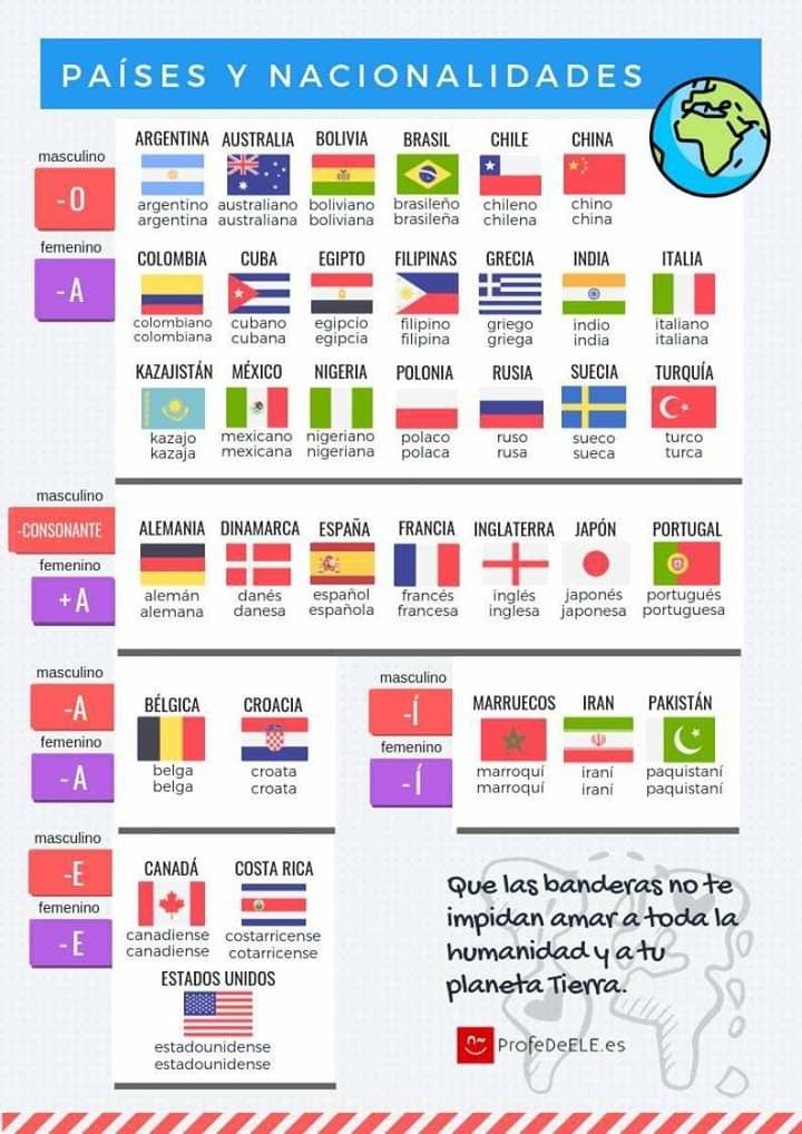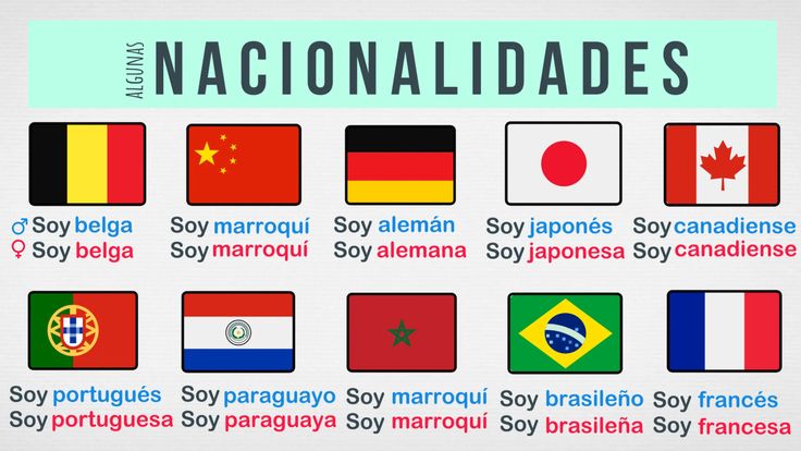 О национальностях в испанском языке часто говорят, используя прилагательные национальности, которые являются прилагательными, описывающими страну, из которой человек или предмет.