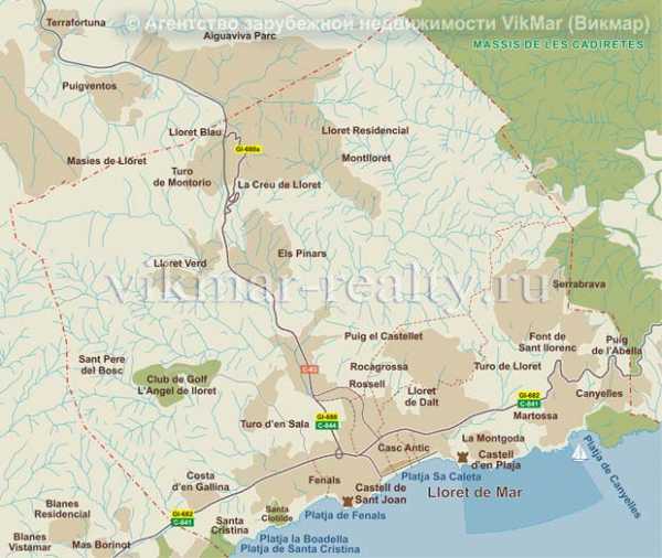 Карта пригородных зон и жилых районов города Ллорет де Мар (Lloret de Mar) в Испании