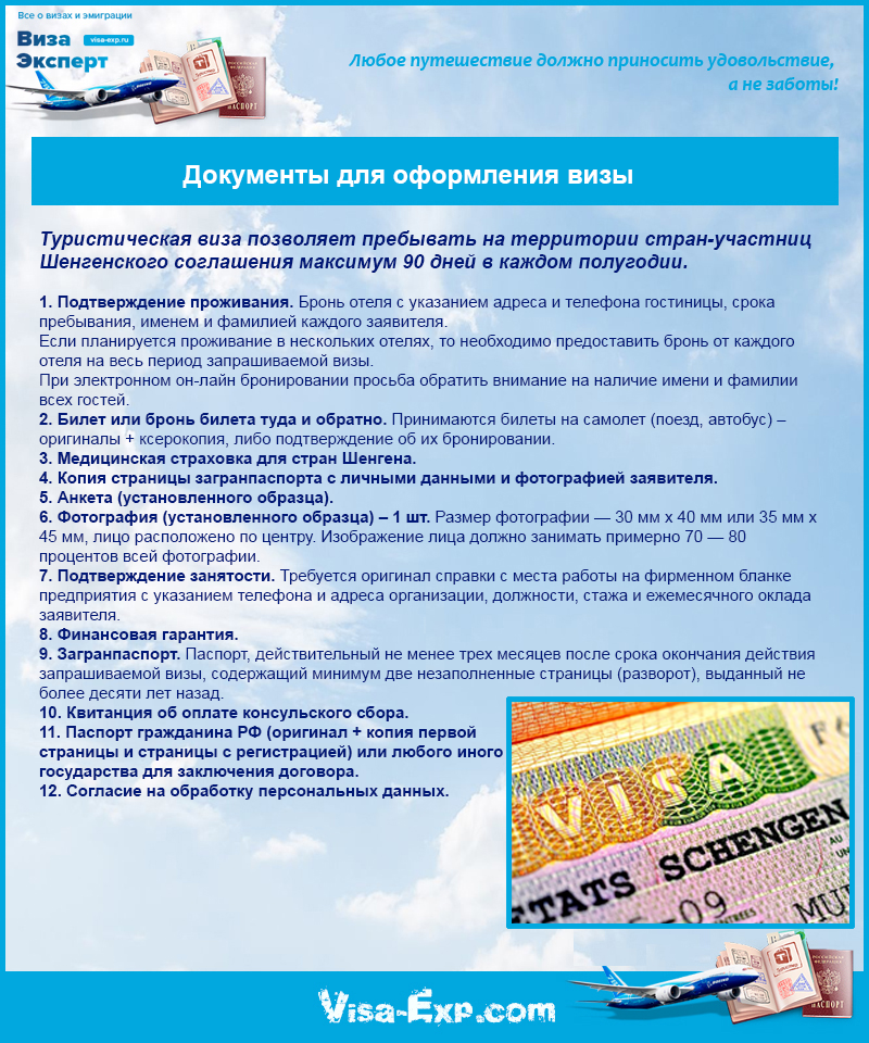 - Необходимо предоставить документальное подтверждение медицинского страхования путешествующих с минимальным покрытием 30 000 евро, действительным для всей Шенгенской зоны.