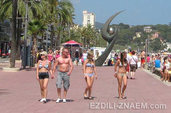 На фото: туристы на набережной в испанском Ллорет де МарДни и ночи напролет по улицам Ллорет де Мар слоняются активные голопузые тинэйджеры всегда готовые к тусовкам, знакомствам и приключениям.